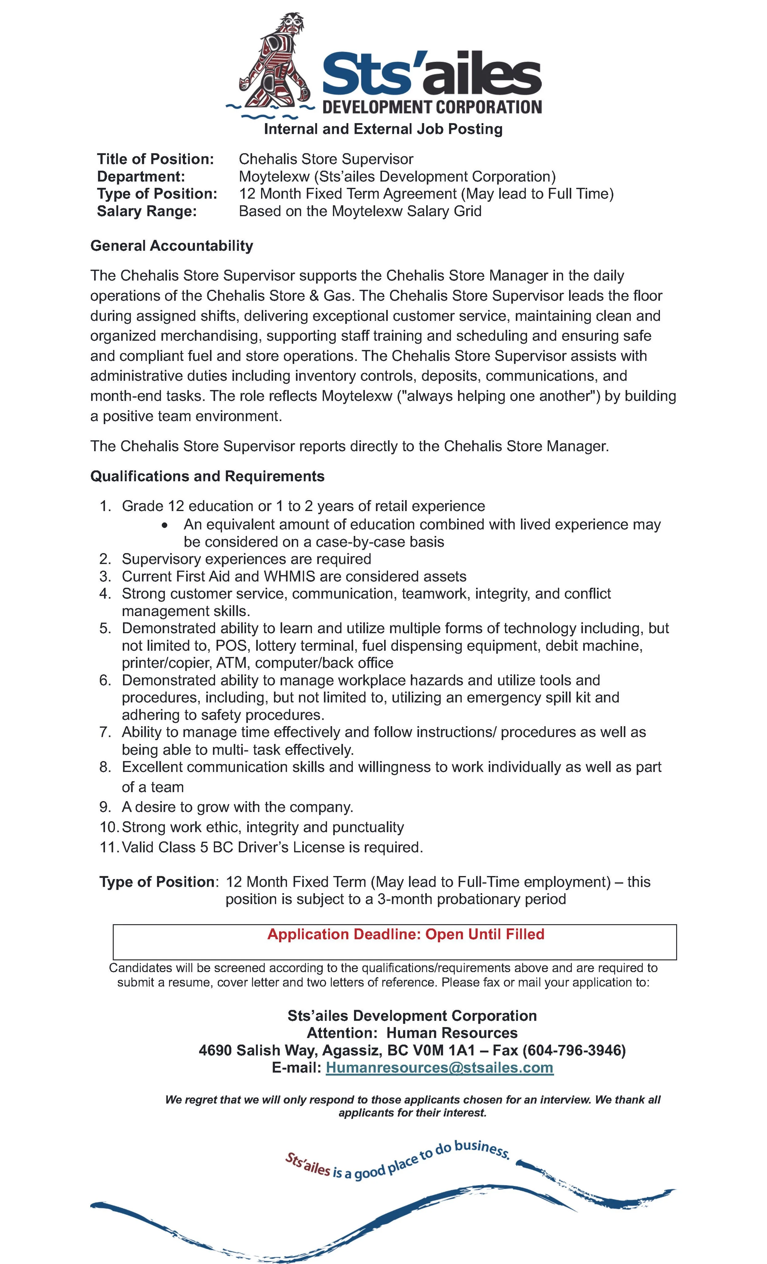 Chehalis Store Supervisor